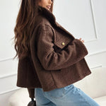 Cropped Teddy Jacket – Chocolate Elegance