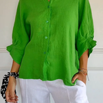 The standout feature is the chic bow-back accent with gold eyelets, offering a refined twist on classic tailoring. Whether styled with tailored trousers or relaxed linen shorts, this blouse moves seamlessly from weekday to weekend. The soft texture and relaxed silhouette embody understated luxury, perfect for women who value both quality and quiet statement pieces.