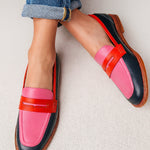 Crafted for women who dare to stand out, the Mielure Signature Colourblock Loafer blends artistry and attitude in one bold silhouette. A confident mix of fuchsia pink, crimson red, and deep navy, this handcrafted loafer transforms every outfit into an expression of self-assurance.