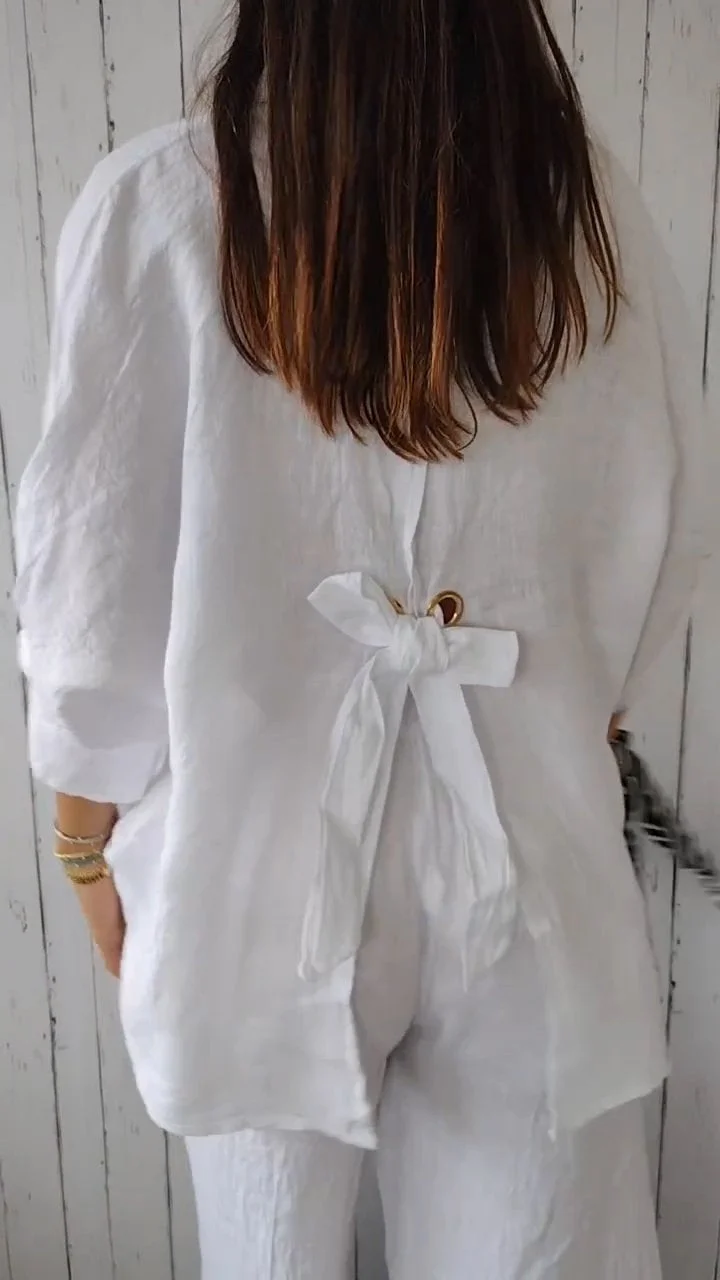 Linen Bow-Back Blouse – Summer Elegance in Linen